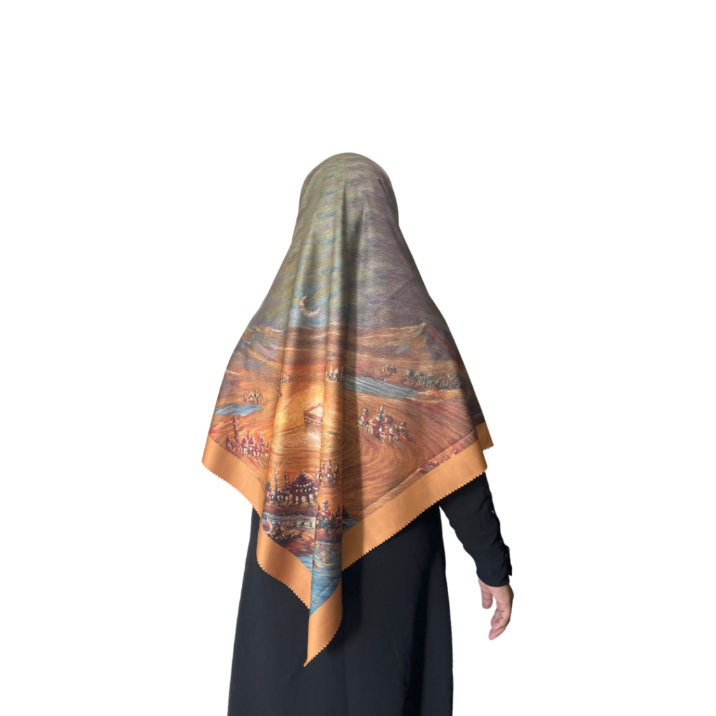 Luxurious square hijab, inspired by the beauty of the painting “Turning The Night On”