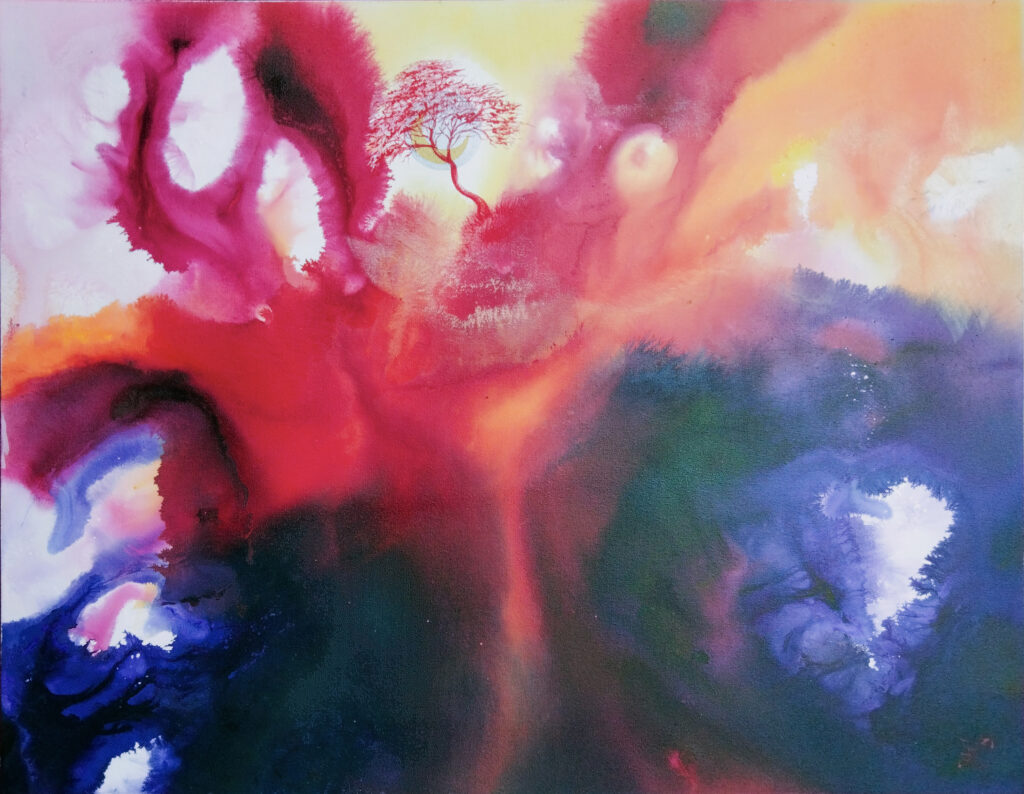 Luxurious square hijab, inspired by the beauty of the painting “Spirit of Life”
